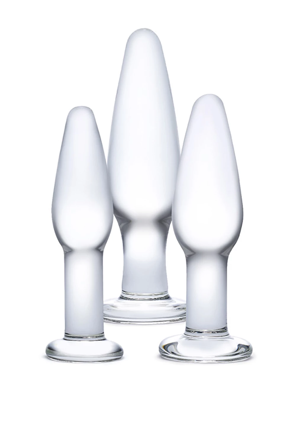 If you’re looking to take the next big step in anal play, then an anal training set is a must-have. This 3-piece glass anal training set will take you through three different levels of anal play to prepare you for your journey through the back door.