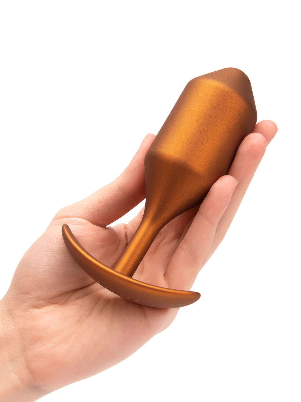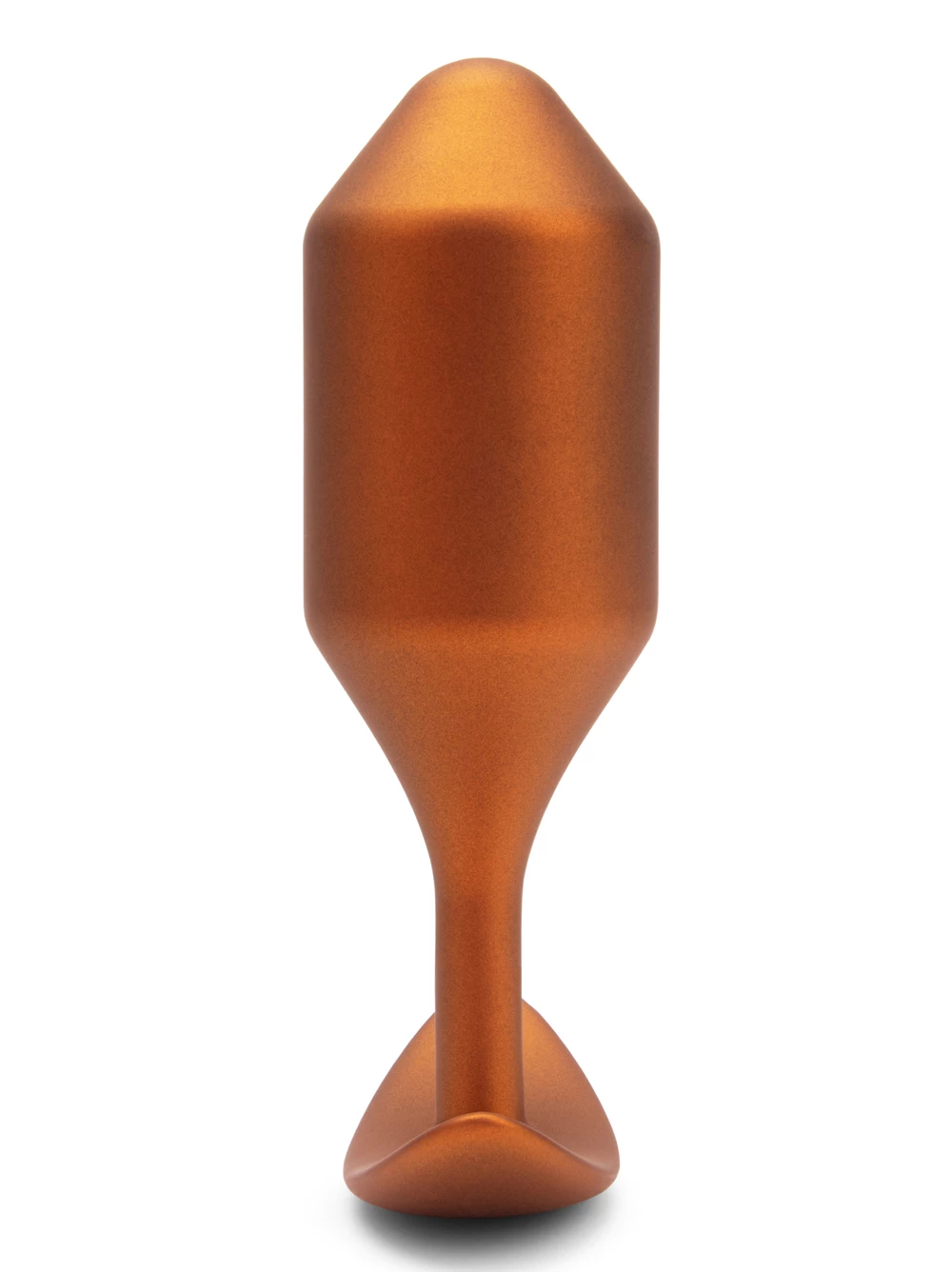 This stylish, weighted anal plug features a long, slender neck for comfort during wear and made of smooth, seamless silicone. The Snug Plug 4 is designed with a tapered tips and rounded edges for ease of insertion. Weighted balls offer additional feeling of fullness and pressure. Apply vibration to the tip and the Snug Plug will transmit sensation throughout your entire body! Wear them during partner sex or for solo pleasuring. We recommend a thicker water-based lubricant with this plug.