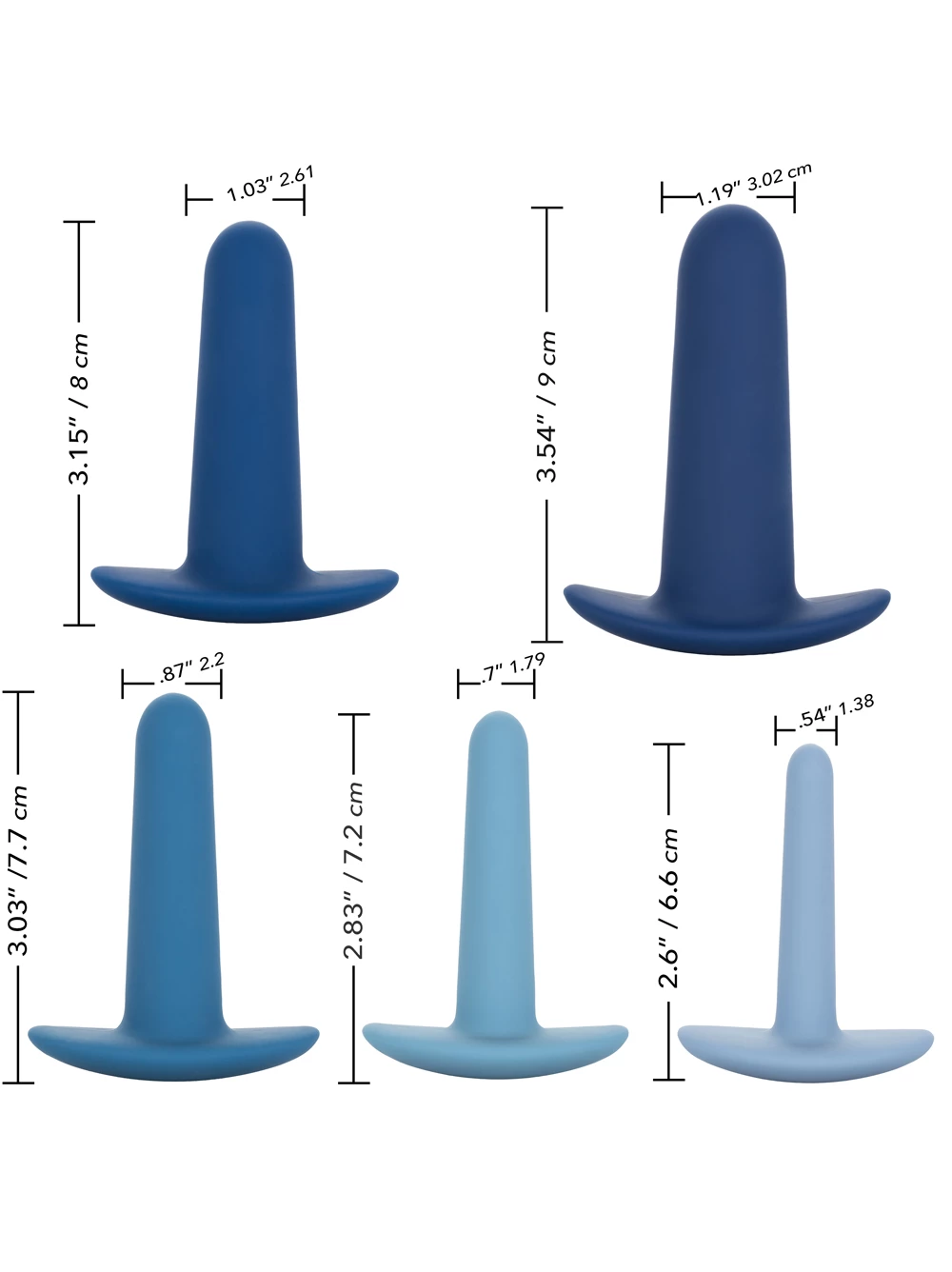 To enjoy everything the wonderful world of anal play has to offer, training is in order to ensure total safety and satisfaction. Each probe in this kit gradually increases in length and girth for superb pleasure at any level of play. With their unique wearable design, each probe is finished with a flexible flanged base for comfort, easy of mobility and ease of use. The graduated thickness of the shaft allows you to progress at your own comfortable pace. The shape and design of these plugs allow for vaginal insertion as well! Apply a little bit of vibration to the base for added pleasure! Each plug is made from smooth and seamless silicone. This body safe material is unscented and phthalate free to keep your most sensitive spots happy and healthy.