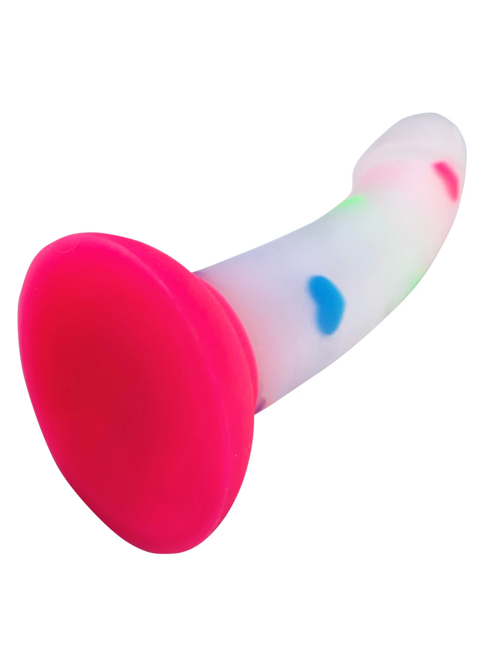 Love is in the air! Among other places… The adorable Candy Heart dildo is sugar and sweet rolled up in one tasty dildo. Semi-anatomically shaped, this opaque silicone dildo rocks a pronounced head, a concave base, and a slight angle ideal for G-spot or prostate stimulation. Playful and functional, this 7” sweetie features hearts throughout its clear frame and smooth shaft. LOVE! The suction cup on the base can provide a strong seal onto most flat surfaces for a truly hands-free experience. The wider base also provides extra cushioning when pressed against the body or worn in a harness. What’s not to love?! Harness-compatible and anal-safe, this lively dildo will make the perfect treat for yourself or as a fun gift!