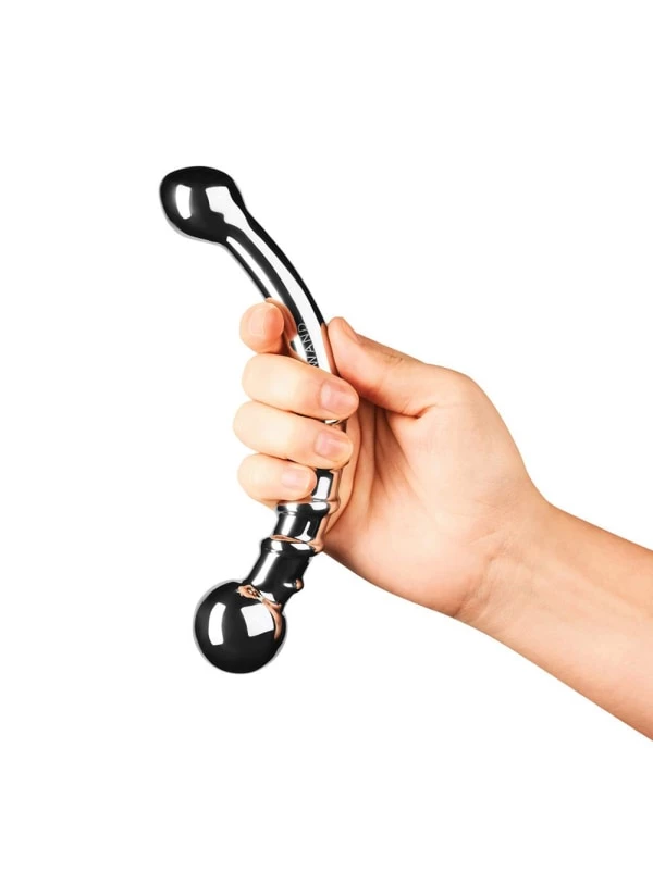 Choose between a pronounced head with ridges and a smaller bulb for targeted stimulation with the double-ended design of the stainless steel Bow! Metal toys are some of our favorites because of their superior slickness, hygiene and stiffness. They also work well with all types of lubricants! The steep ergonomic curve of the Bow allows for easy insertion and the application of pressure during vaginal or prostate massage. Feeling adventurous? Try cooling it down or slightly warming it up with water for tantalizing temperature play. To clean, simply use soap and water, pop it in the dishwasher or boil it for a few minutes to fully disinfect. Its added weight provides great resistance during Kegel exercises. Weighing in at 1.11 lbs., the crescent-shaped Bow by Le Wand is sure to make a stylish addition to your toy collection.