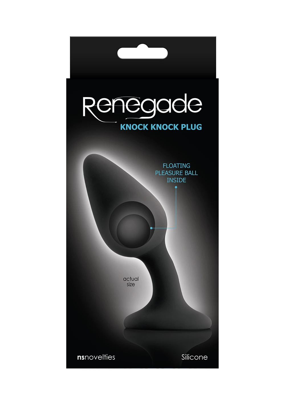 Thump and Roll into exquisite pleasure with Knock Knock from Renegade. Anatomically designed angled silicone plug featuring a free-floating steel ball. Tapered for easy insertion. Suitable to use with all lubricants.