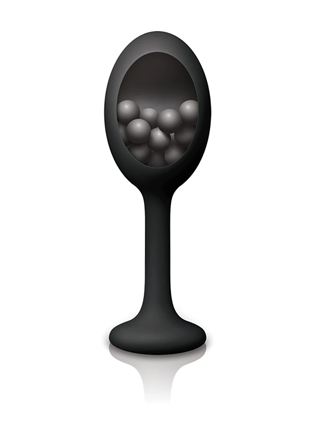 Encased inside a smooth silicone plug with a flared cherry-stem tail, free-flowing metal beads clash to produce intense stimulation and a unique experience! Available in red, blue, and black. Suitable with all lubricants.
