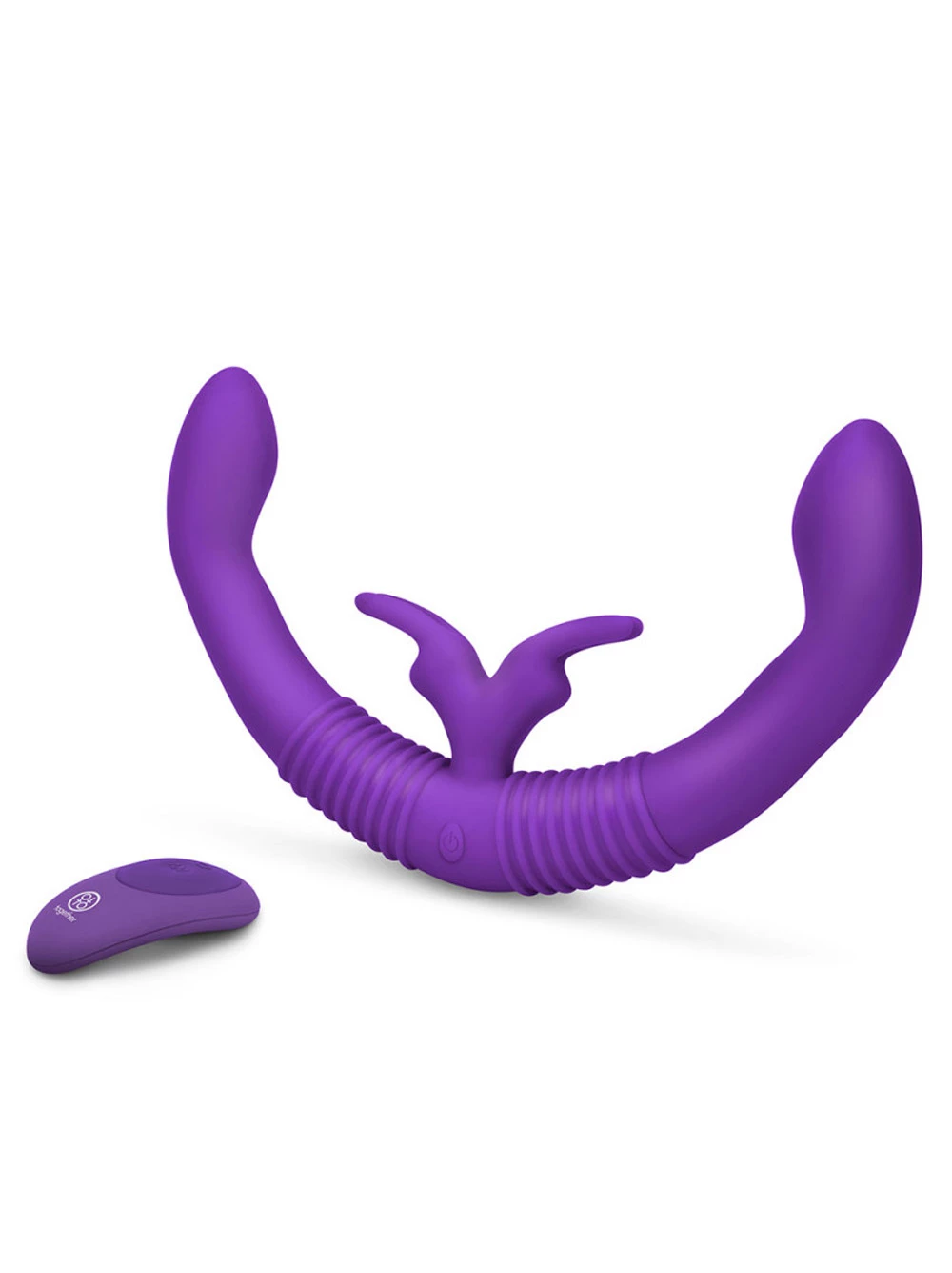 Together™’s innovative approach to shared passion is designed to allow both partners to face each other, promoting closeness during intimacy. Great for face-to-face intercourse but also great when partners move into different positions. In addition to dual functionality for both partners, the design offers the perfect amount of tension for multiple positions, ideal for hitting both partners’ g-spots and/or p-spots since the outer arms can be used vaginally and/or anally!Â